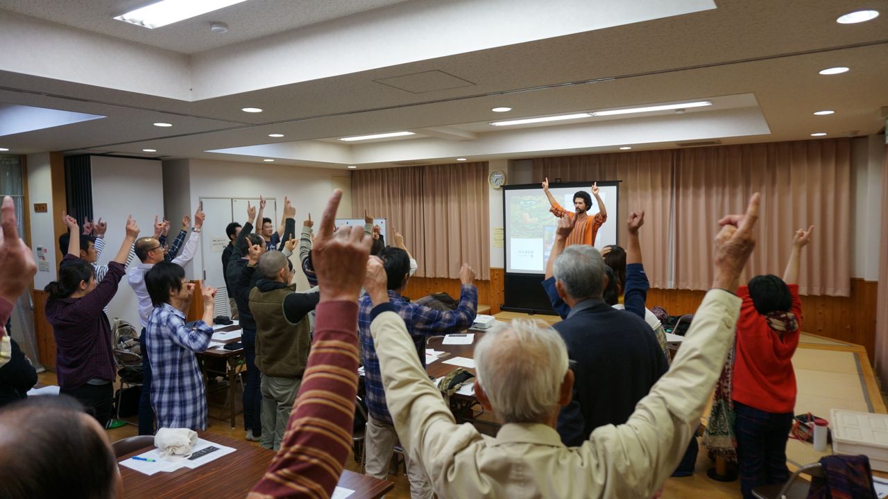 とパーマカルチャーについての説明をした後にアイスブレイクに入るのですが。。。